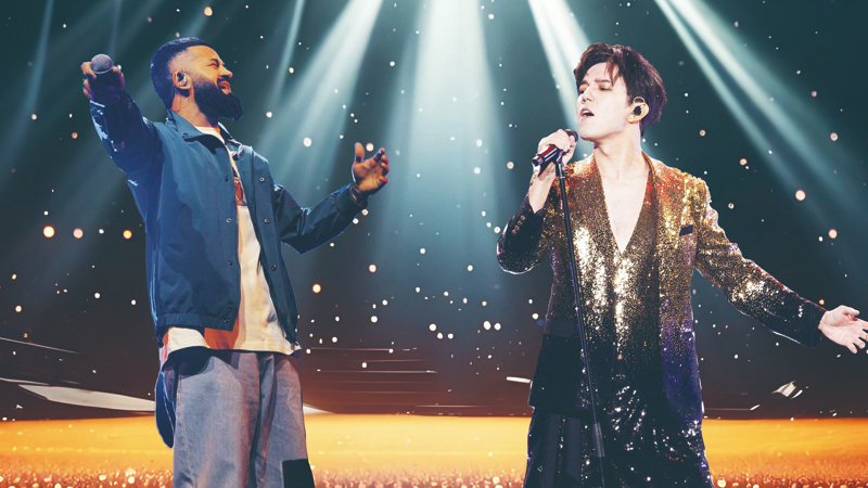 哈萨克斯坦歌手亚当(左)与迪玛希。 制图:李洁