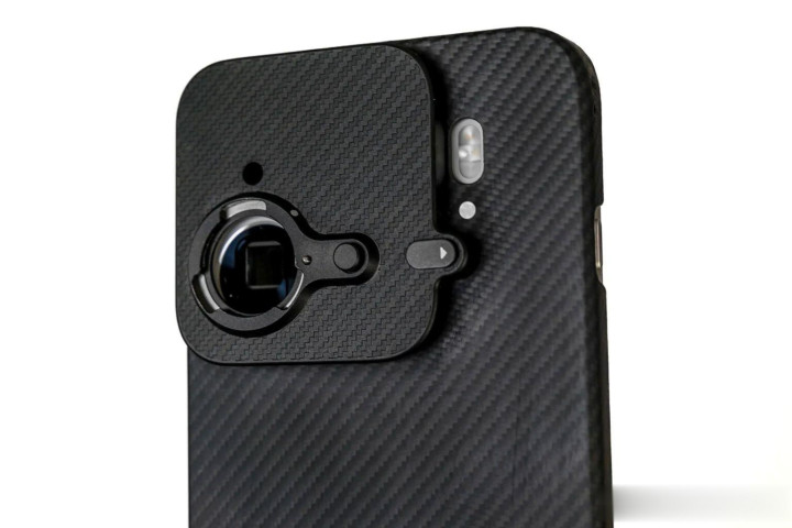 不过值得肯定的是,滑入式支架镜头座比vivo的环形支架更易操作——但取下增距镜后,无法保留支架,因为它会遮挡另外两个后置镜头。这意味着使用时需要安装两个部件,而非一个,同时还得小心保管支架,避免丢失。